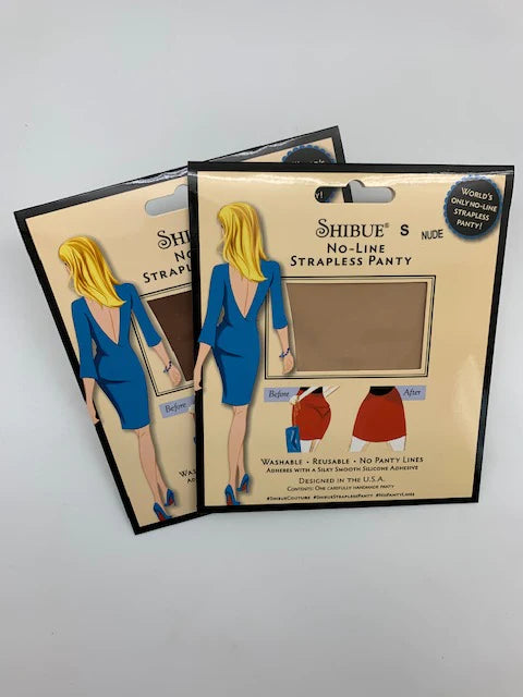 The Shibue No-Line Strapless Panty Classic is truly the most comfortable panties that you’ll ever wear! Shibue’s are held in place by a washable and reusable soft, silky silicone gel adhesive that is adhered to the top front and top back of the panty leaving nothing but a smooth, clean silhouette on your sides.